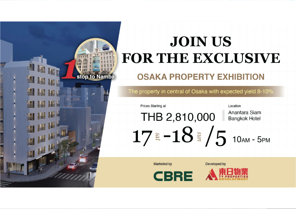 At TY Properties Development, we’re thrilled to announce our exclusive partnership with CBRE —a global leader in real estate services—to bring you an unparalleled opportunity to invest in Osaka’s booming property market.